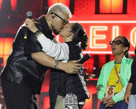 A gestora municipal foi chamada ao palco para fazer os agradecimentos no final do show do cantor e surpreendeu o público com uma declaração ao artista, seguida de um selinho.